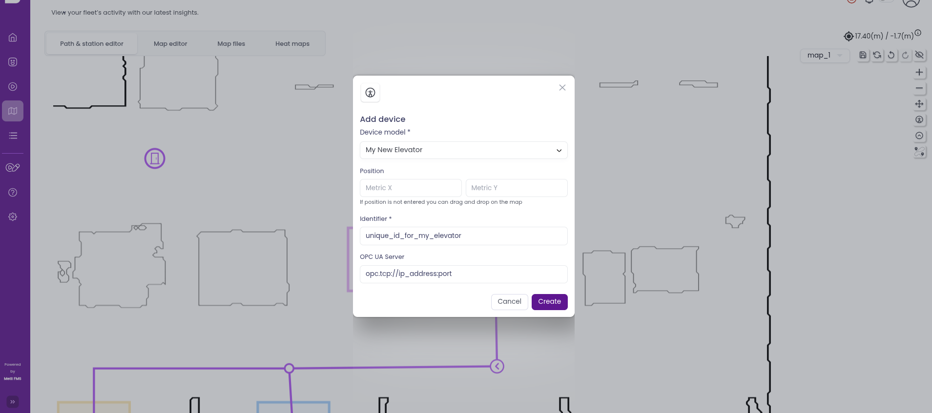 Dashboard → Maps tab → Path & Station Editor subtab → Create Device
