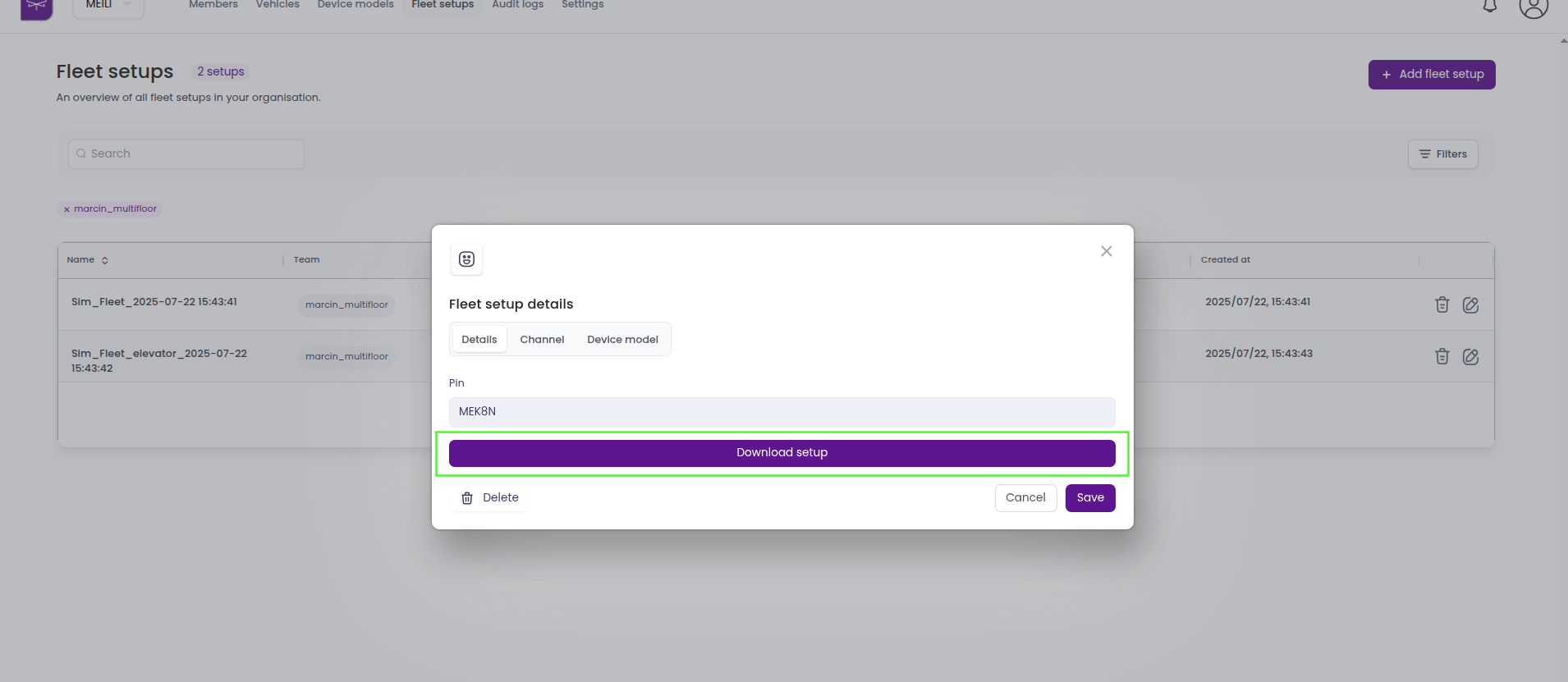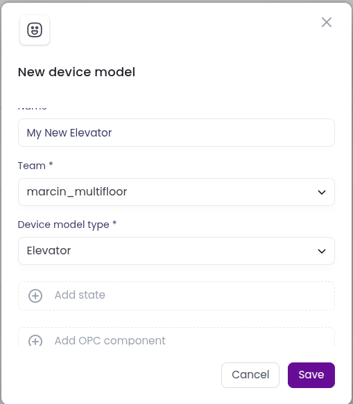 Device modelfrom the dropdown list. - Device Models – (Visible once the setup type is selected) Choose the elevator model added in the previous steps.
