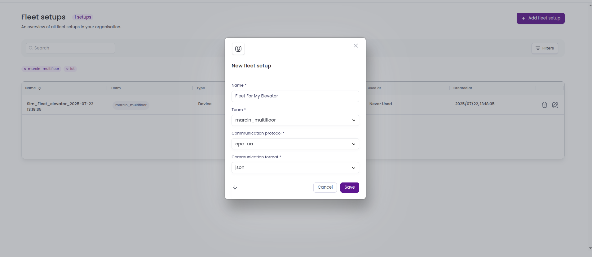 Once the elevator and fleet setup are created, configure the Meili OPC–MQTT Bridge.