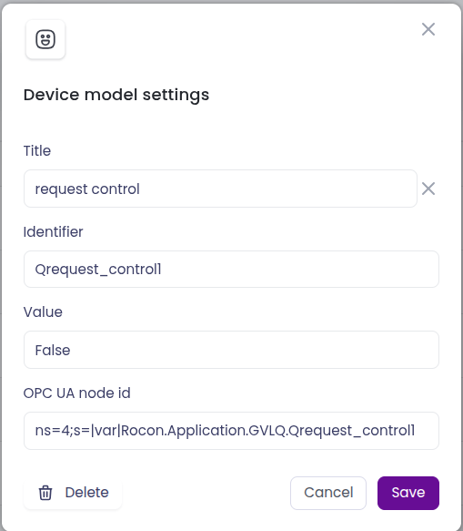 - OPC UA Node ID – The node ID as defined by the device manufacturer.