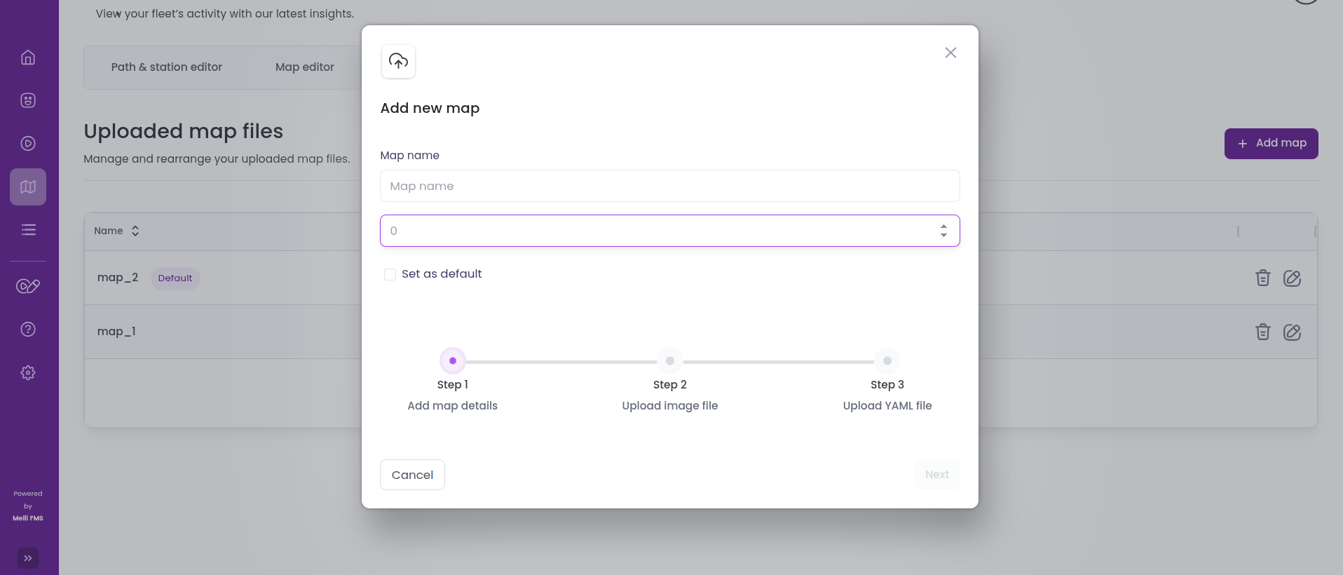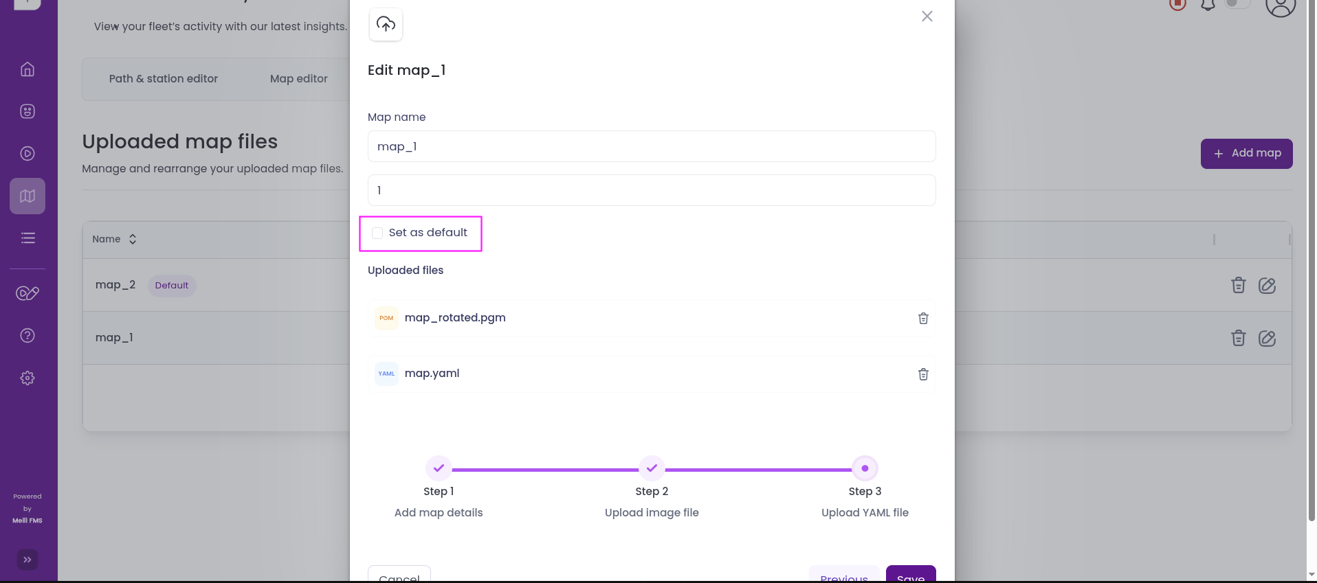Once a map is successfully added, it will appear in the list under the Map tab.
