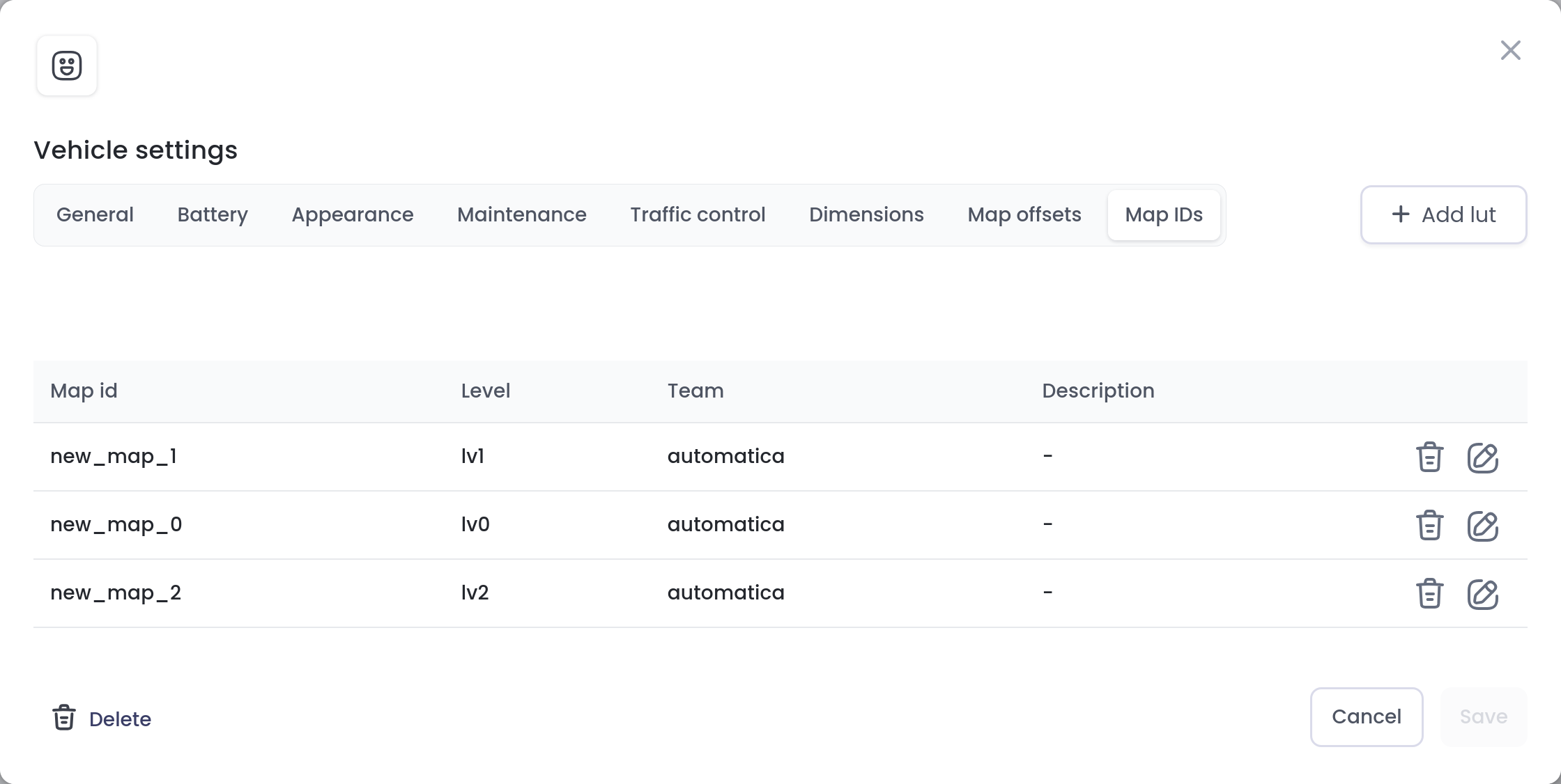 Once defined, Meili FMS automatically translates all incoming and outgoing map-related messages for that robot based on the specified Id table entries.